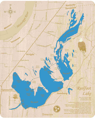 This is a beautiful, detailed, laser engraved and precision cut map, including lake information such as surface area, elevation and maximum depth.