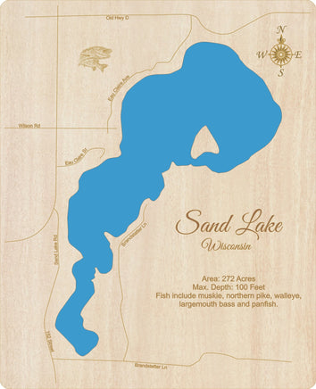 This is a beautiful, detailed, laser engraved and precision cut map, including lake information such as surface area, elevation and maximum depth.
