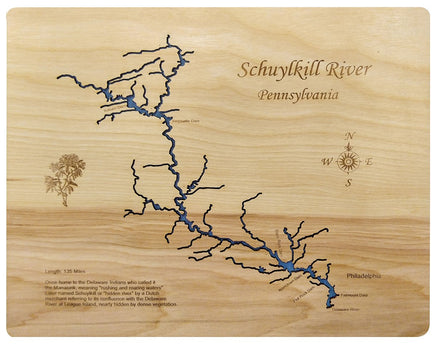 Our maps are made from beautiful birch plywood. Natural variances in the wood grain ensure a unique work of art. Once the map is cut, it is hand sanded multiple times, mounted on a blue board to highlight the water, and given a clear coat for a lustrous wood shine. Proudly made in the USA by American workers in an American owned business.