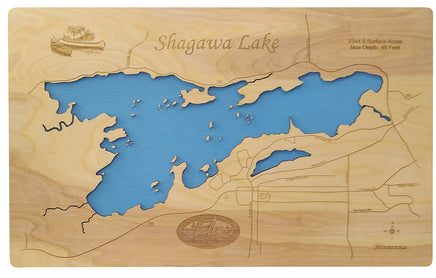 This is a beautiful, detailed, laser engraved and precision cut map, including lake information such as surface area, elevation and maximum depth.