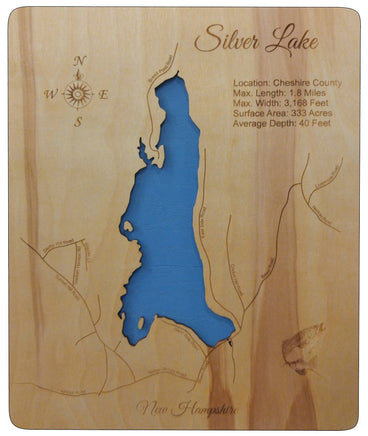 This is a beautiful, detailed, laser engraved and precision cut map, including lake information such as surface area, elevation and maximum depth.