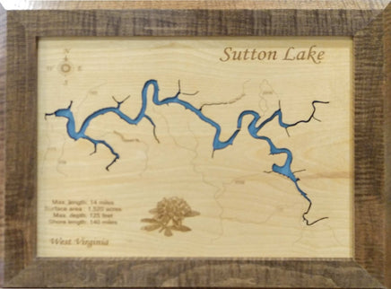 This is a beautiful, detailed, laser engraved and precision cut map, including lake information such as surface area, elevation and maximum depth.