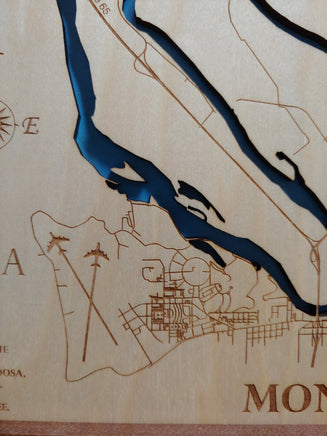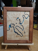 This is a beautiful, detailed, laser engraved and precision cut map, including lake information such as surface area, elevation and maximum depth.