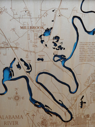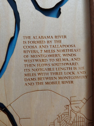 Our beautifully detailed, laser engraved and precision cut map of Alabama River, Alabama with the following interesting stats carved into it: