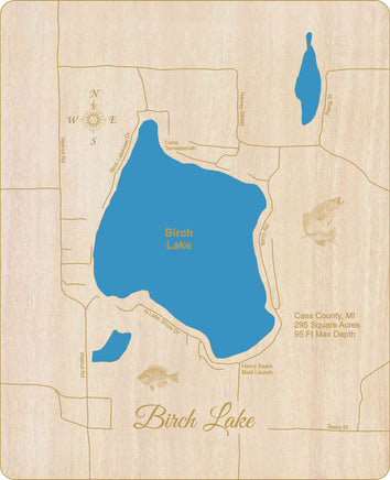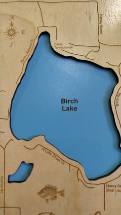 This is a beautiful, detailed, laser engraved and precision cut map, including lake information such as surface area, elevation and maximum depth.