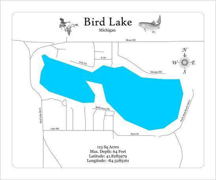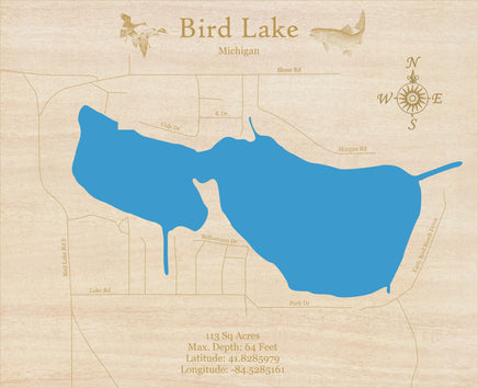 This is a beautiful, detailed, laser engraved and precision cut map, including lake information such as surface area, elevation and maximum depth.