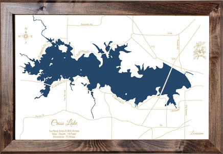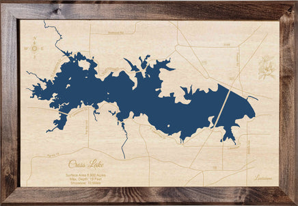 This is a beautiful, detailed, laser engraved and precision cut map, including lake information such as surface area, elevation and maximum depth.