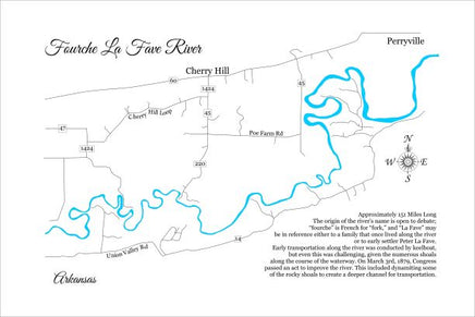 The origin of the river’s name is open to debate; “fourche” is French for “fork,” and “La Fave” may be in reference either to a family that once lived along the river or to early settler Peter La Fave.