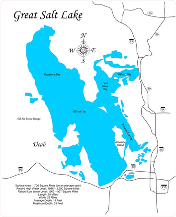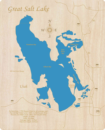 This is a beautiful, detailed, laser engraved and precision cut map, including lake information such as surface area, elevation and maximum depth.