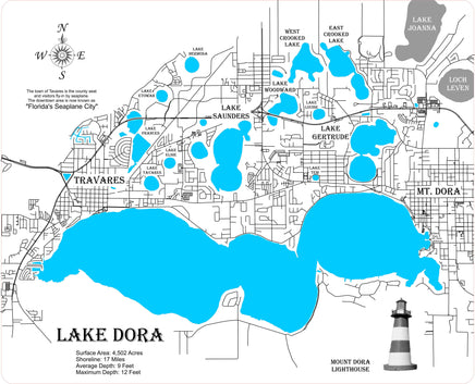 - Many antique boat lovers live in Mount Dora on the lake where it is normal to see them cruising the lakes in their beautiful wooden boats. The town of Tavares is the county seat and visitors fly-in by seaplane. The downtown area is now known as "Florida's Seaplane City".
