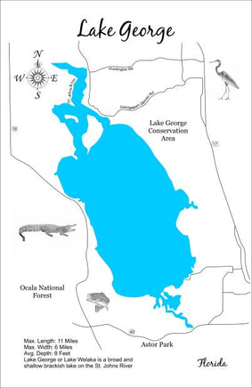 - Lake George or Lake Welaka is a broad and shallow brackish lake on the St. Johns River