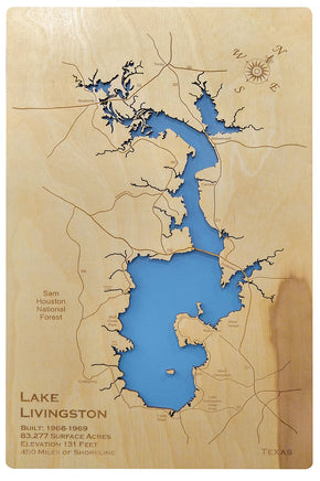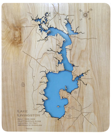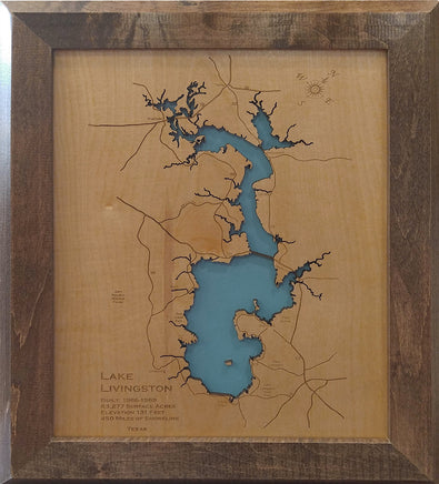 This is a beautiful, detailed, laser engraved and precision cut map, including lake information such as surface area, elevation and maximum depth.