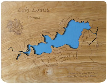This is a beautiful, detailed, laser engraved and precision cut map, including lake information such as surface area, elevation and maximum depth.