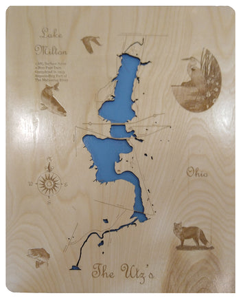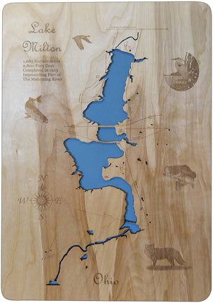 This is a beautiful, detailed, laser engraved and precision cut map, including lake information such as surface area, elevation and maximum depth.