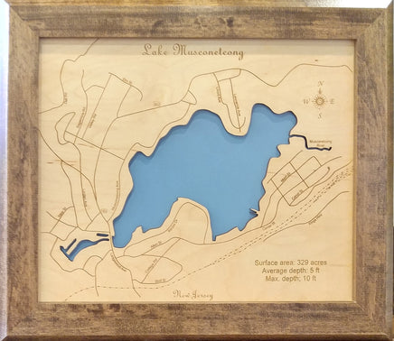 This is a beautiful, detailed, laser engraved and precision cut map, including lake information such as surface area, elevation and maximum depth.