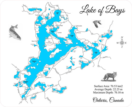 This is a beautiful, detailed, laser engraved and precision cut map, including lake information such as surface area, elevation and maximum depth.
