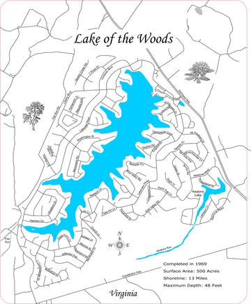 This is a beautiful, detailed, laser engraved and precision cut map, including lake information such as surface area, elevation and maximum depth.