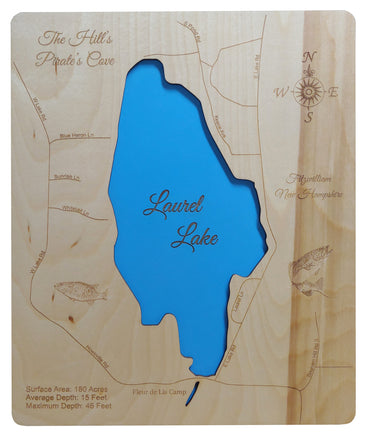 This is a beautiful, detailed, laser engraved and precision cut map, including lake information such as surface area, elevation and maximum depth.