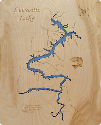 This is a beautiful, detailed, laser engraved and precision cut map, including lake information such as surface area, elevation and maximum depth.
