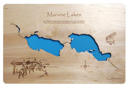This is a beautiful, detailed, laser engraved and precision cut map, including lake information such as surface area, elevation and maximum depth.